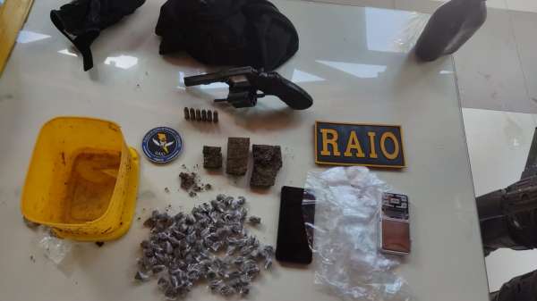 Durante a procura, o adolescente foi localizado e apreendido por estar armado. Ainda, a droga que estava ali, escondida, foi apanhada pelos policiais.