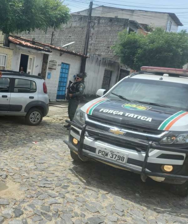 Por volta de 11h45, a viatura da área recebeu informes de que na rua Geraldo Barbosa estaria um indivíduo conhecido como “Ressaca”, o qual estaria com mandado de prisão em aberto.