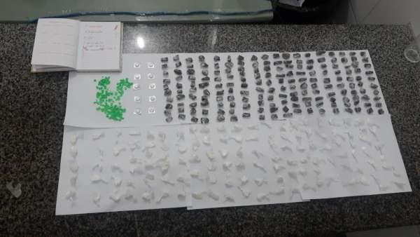 Os policiais militares foram até o endereço e se depararam com José Claudiney tentando esconder uma sacola atrás do portão do imóvel. Ele foi abordado com o total de 180 trouxinhas da maconha, 163 pedras de crack, 124 trouxinhas de cocaína, 10 comprimidos de clonazepam e uma caderneta no referido saco plástico.