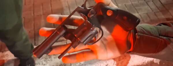 Na rua 325, os suspeitos ao visualizarem os policiais empreenderam fuga adentrando em uma residência. No interior da casa, o menor foi apreendido com uma espingarda calibre 12, sendo o segundo suspeito, preso enquanto tentava fugir pelos telhados da casa, portando a arma de calibre .38. Um terceiro suspeito conseguiu fugir. Ao realizar buscas no interior da residência foi encontrada uma terceira arma de fogo.