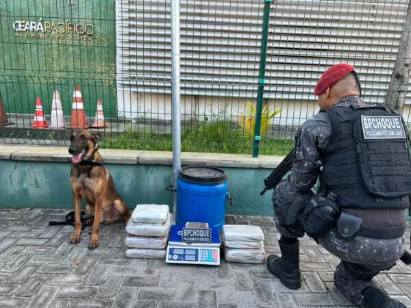 Com o auxílio de cão farejador, PMCE apreende mais de 12kg de maconha em Fortaleza