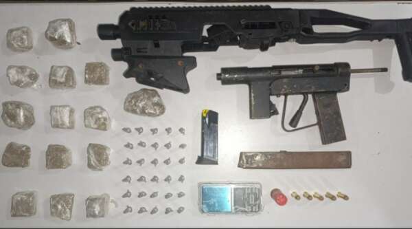 Uma submetralhadora artesanal calibre 9mm sem numeração foi apreendida pela Polícia Militar do Ceará (PMCE), através do Comando de Policiamento de Rondas de Ações Intensivas e Ostensivas (CPRAIO), na noite dessa segunda-feira (29), no bairro São Miguel, em Caucaia. Além da arma, os agentes apreenderam um kit Roni (equipamento usado para adaptar artesanalmente armas de fogo), 371g de maconha, 21g de cocaína, um carregador de pistola e munições.