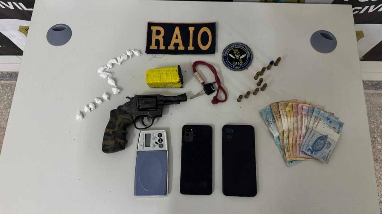 Na noite dessa segunda-feira (30), um homem de 32 anos foi preso pela Polícia Militar do Ceará (PMCE) na localidade de Espraiado da cidade de Acaraú. Com o suspeito foi apreendido uma motocicleta roubada, revólver e drogas.