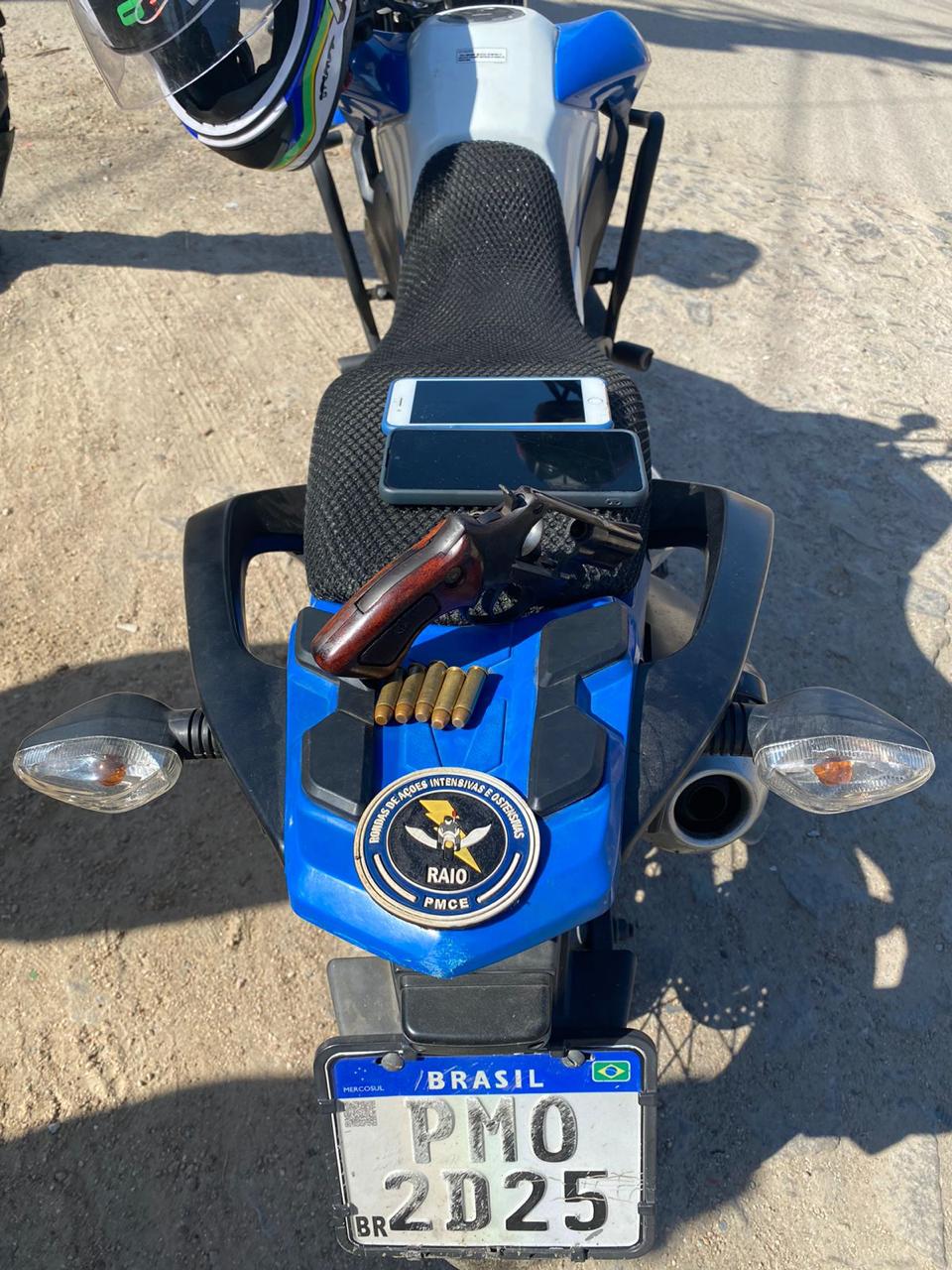 PMCE prende dois suspeitos com arma e motocicleta roubada na Pacatuba