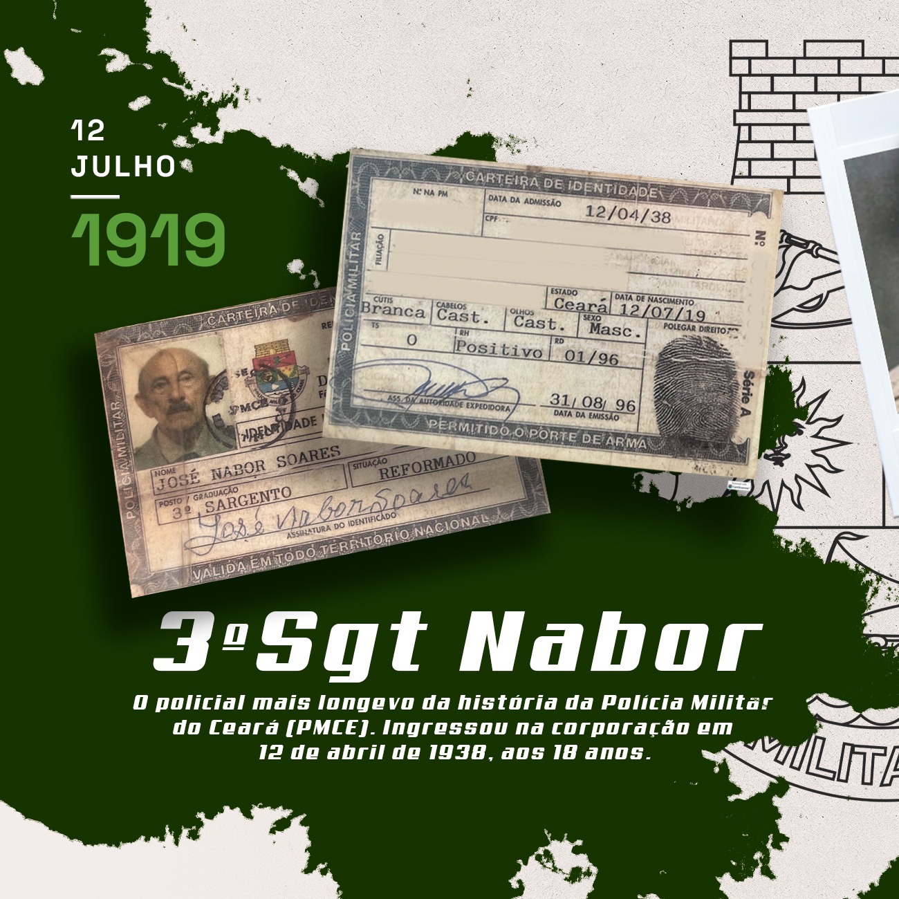 O sargento reformado José Nabor Soares, nascido em 12 de julho de 1919, é o policial mais longevo da história da Polícia Militar do Ceará (PMCE). Ingressou na corporação em 12 de abril de 1938, aos 18 anos. Hoje, aos 105 anos, segue como memória viva de um século que viu o mundo mudar.