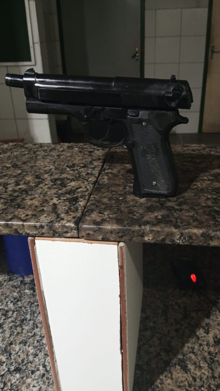 Uma equipe do 19º Batalhão (19º BPM), da Polícia Militar do Ceará (PMCE), cumpriu dois mandados de prisão em aberto em desfavor de um suspeito de 39 anos e apreendeu um simulacro de pistola durante patrulhamento na Rua Tenente Roma, no bairro Aerolândia, em Fortaleza, na madrugada dessa quarta-feira (3). O suspeito possui 15 autuações criminais.
