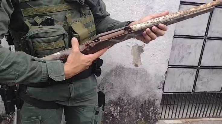 A ação ocorreu durante patrulhamento na rua 30 de Abril, quando os policiais receberam informações de que o local estaria sendo utilizado por indivíduos para esconder armas de fogo. Ao chegarem ao endereço indicado, não havia suspeitos no imóvel. No entanto, após buscas, a espingarda foi localizada e apreendida.