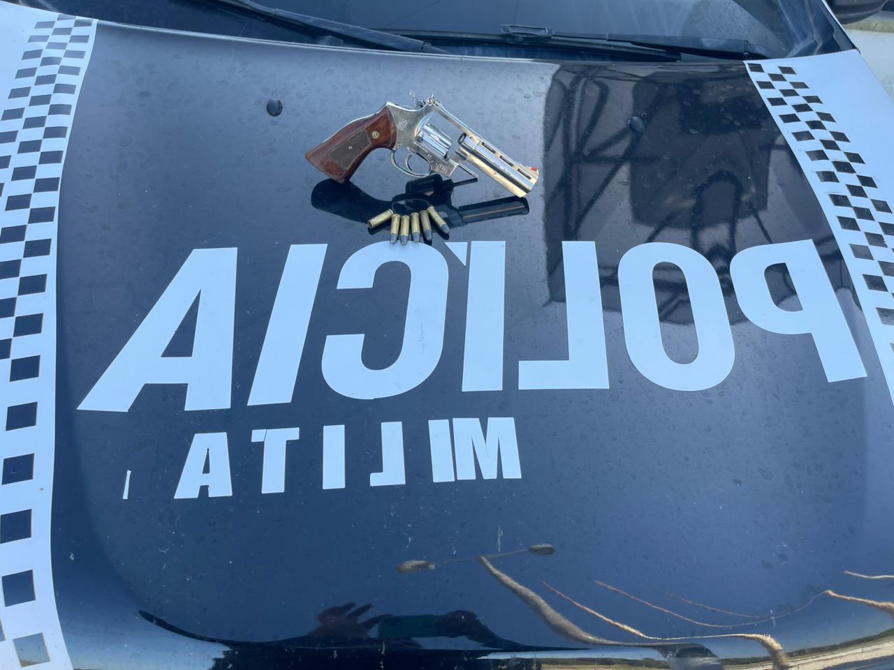 Uma ação da Polícia Militar do Ceará (PMCE), por meio do 15º Batalhão Policial Militar (15º BPM), resultou na prisão de um homem de 69 anos por ameaça e porte ilegal de arma de fogo, na manhã desta segunda-feira (6), em Pindoretama, Área Integrada de Segurança 13 (AIS 13). Na ocorrência, um revólver calibre .38 e seis munições, sendo uma deflagrada, foram apreendidos.