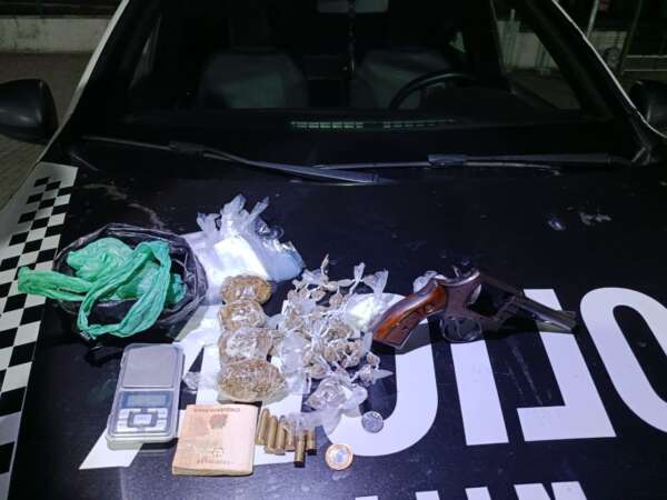 A Polícia Militar do Ceará (PMCE) prendeu, na madrugada deste domingo (12), um homem de 21 anos, com quem foram apreendidos um revólver de calibre .38, 130 gramas de maconha, 25 gramas de cocaína, uma balança de precisão e R$ 138 em espécie. A ação foi realizada por equipes do 19º Batalhão (19º BPM), no bairro Passaré, em Fortaleza.