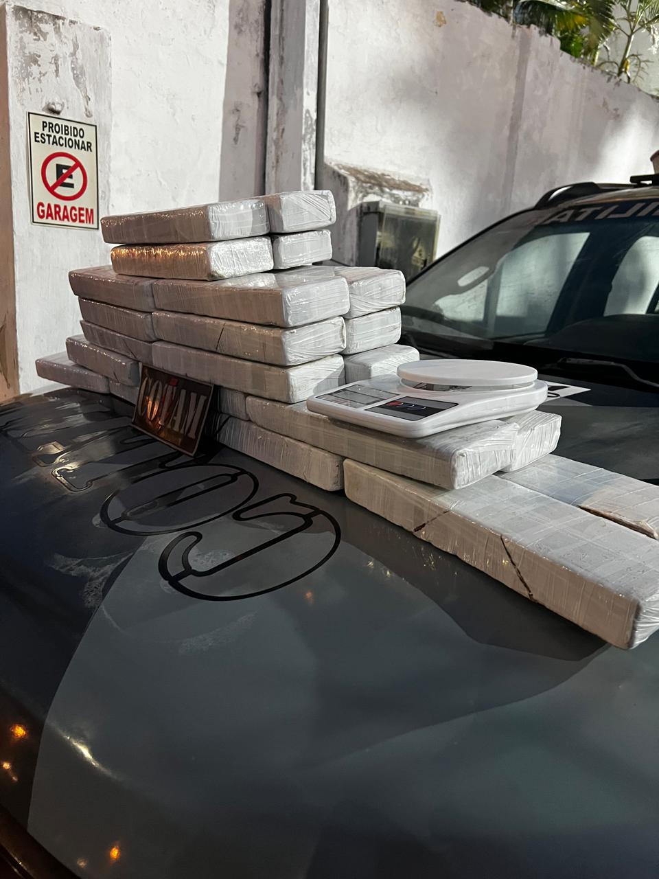 A ocorrência teve início após informações repassadas pela Assessoria de Inteligência Policial Militar (Asint) indicar que em uma residência da Rua Papi Júnior havia intensa movimentação relacionada ao tráfico de drogas. As equipes do Cotam deslocaram-se até o endereço, onde localizaram o suspeito no interior do imóvel manipulando e embalando entorpecentes em formato de tabletes. Durante a vistoria, foi constatado o forte odor característico de droga e, na ação, apreendida a substância ilícita, além de uma balança de precisão.
