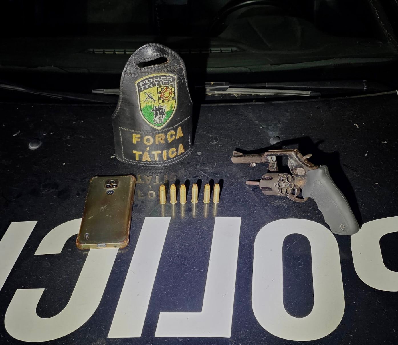 A ação ocorreu após informações repassadas, via Coordenadoria Integrada de Operações de Segurança (Ciops), sobre indivíduos escondidos em uma residência na área, onde havia intenso confronto entre grupos criminosos. No local indicado, os militares encontraram o homem de 34 anos que estava em posse de um revólver calibre 38 com seis munições intactas. O indivíduo também é suspeito de outros crimes na região.
