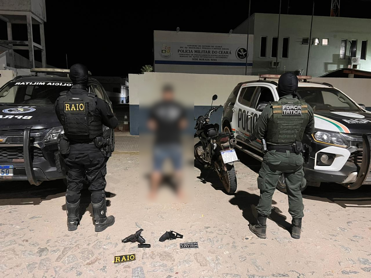 Uma ação da Polícia Militar do Ceará (PMCE), por meio do Comando de Policiamento de Rondas e Ações Intensivas e Ostensivas (CPRAIO) e do 9º Batalhão de Polícia Militar (9º BPM), resultou na prisão em flagrante de um homem de 25 anos por homicídio e tentativa de homicídio. Na ocasião foram apreendidas duas armas de fogo e uma motocicleta com registro de roubo, todas utilizadas nos fatos criminosos. A operação foi registrada na noite dessa segunda-feira (27), no município de Morada Nova.