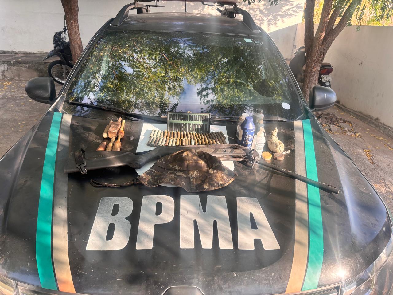 BPMA da PMCE apreende espingarda e materiais de caça na zona rural de Crateús