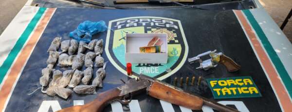 Equipes da Força Tática do 9º Batalhão da Polícia Militar do Ceará (PMCE), com apoio do Batalhão Especializado de Policiamento do Interior (BEPI), desarticularam um acampamento clandestino e apreenderam um arsenal de armas de fogo no distrito de Antônio Pereira, em Ibicuitinga. Três adultos e um adolescente foram capturados durante a ação ocorrida na manhã desta quinta-feira (20).