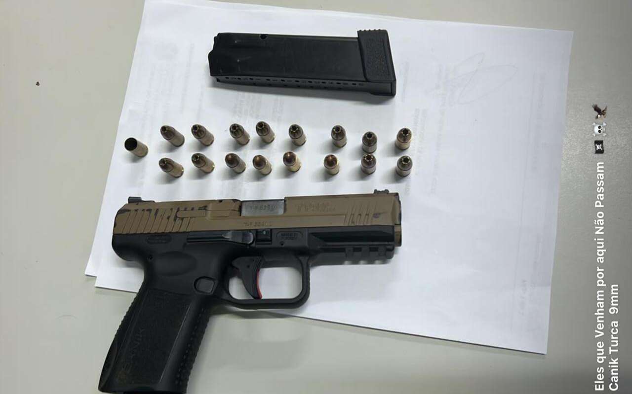 No interior do veículo, os militares encontraram uma pistola calibre 9mm com 17 munições, sendo 16 intactas e uma deflagrada, além de bebida alcoólica. No momento da prisão, o homem desacatou os policiais e resistiu à ação.