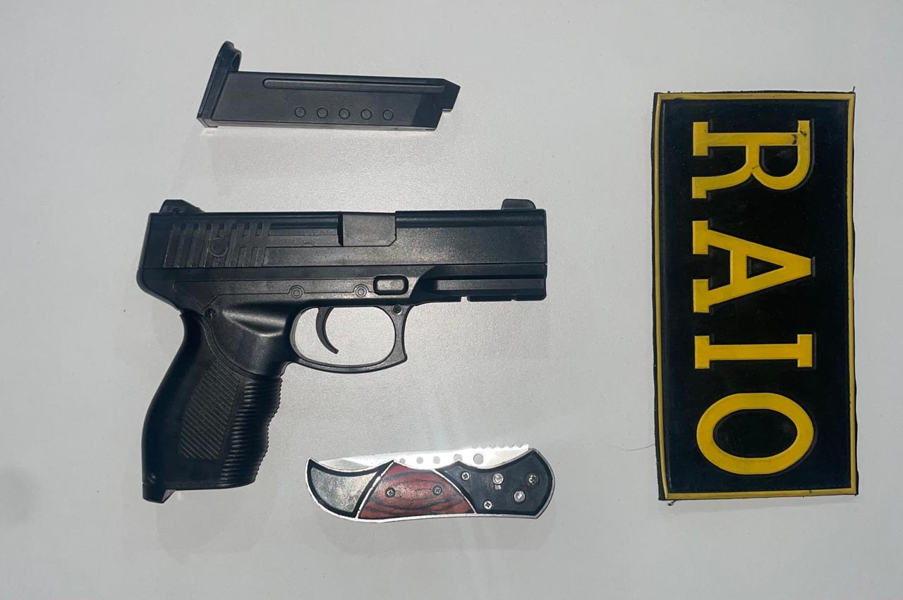 A Polícia Militar do Ceará (PMCE), por meio do 4º Batalhão de Policiamento de Rondas de Ações Intensivas e Ostensivas (4º BPRAIO), apreendeu um simulacro de pistola e um canivete durante uma abordagem no município de São Benedito, na Região da Ibiapaba. A ação ocorreu no fim da tarde desta segunda-feira (1º), após denúncia repassada ao telefone da base do BPRAIO.