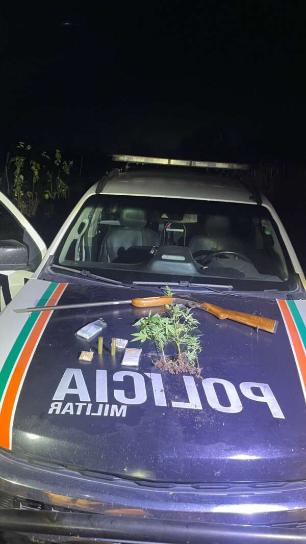 Policiais da Força Tática (FT) do 25º Batalhão da Polícia Militar do Ceará (PMCE) apreenderam, por volta das 21h dessa terça-feira (2), uma espingarda calibre .20, duas munições do mesmo calibre, quatro mudas de pé de maconha, além de 13 gramas de crack e uma pequena porção de maconha. O material foi localizado em uma área de ocupação no município de Itaitinga, após denúncias recebidas pela composição da viatura policial.