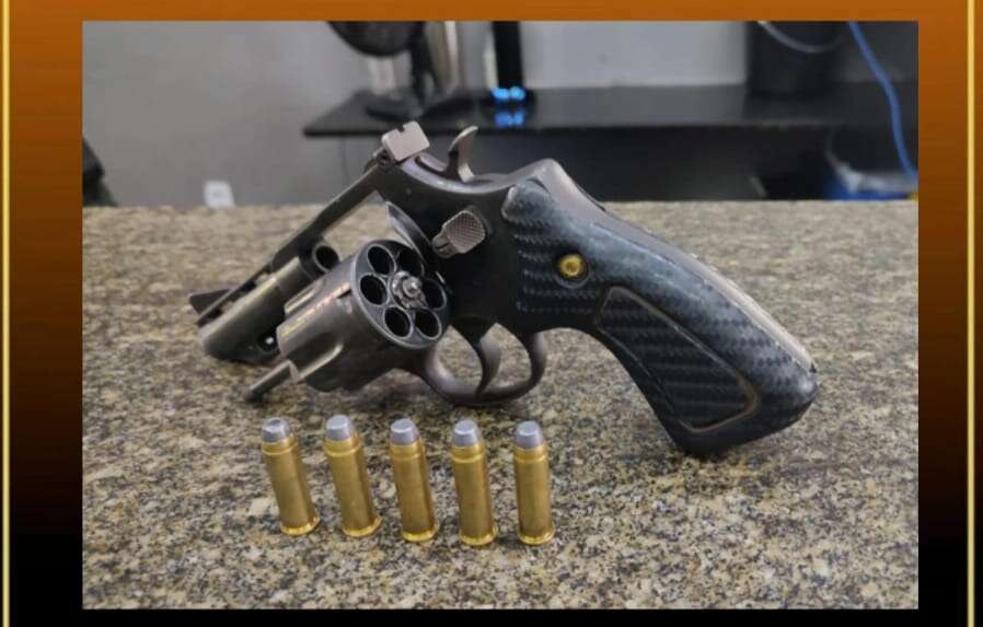 Durante a abordagem, o suspeito informou que havia uma arma dentro do carro. No interior do veículo, os policiais apreenderam um revólver calibre .38, carregado com cinco munições. O material foi recolhido e o homem preso em flagrante.