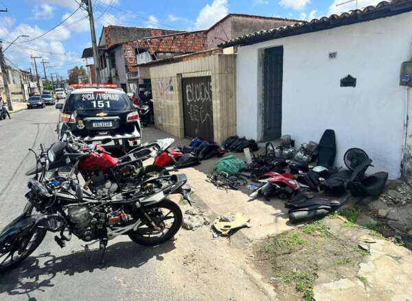 Na segunda ação policial, uma equipe da 2ª Companhia do 1º Batalhão Raio recebeu informações sobre a existência de um ponto de desmanche na Rua Cônego de Castro, no bairro Canindezinho. No local indicado, os policiais encontraram uma residência abandonada e, em seu interior, duas motocicletas com queixa de roubo, além de grande quantidade de peças desmontadas, incluindo motores, tanques de combustível, bancos, faróis, carenagens, escapamentos, guidão e outros componentes. Todo o material foi apresentado na Delegacia de Roubos e Furtos de Veículos e Cargas (DRFV), onde foi lavrado o boletim de ocorrência e realizados os procedimentos cabíveis.