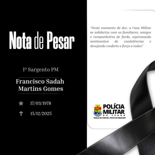 A Polícia Militar do Ceará (PMCE) informa com pesar o falecimento do 1º Sargento PM FRANCISCO SADAH MARTINS GOMES, 47.
