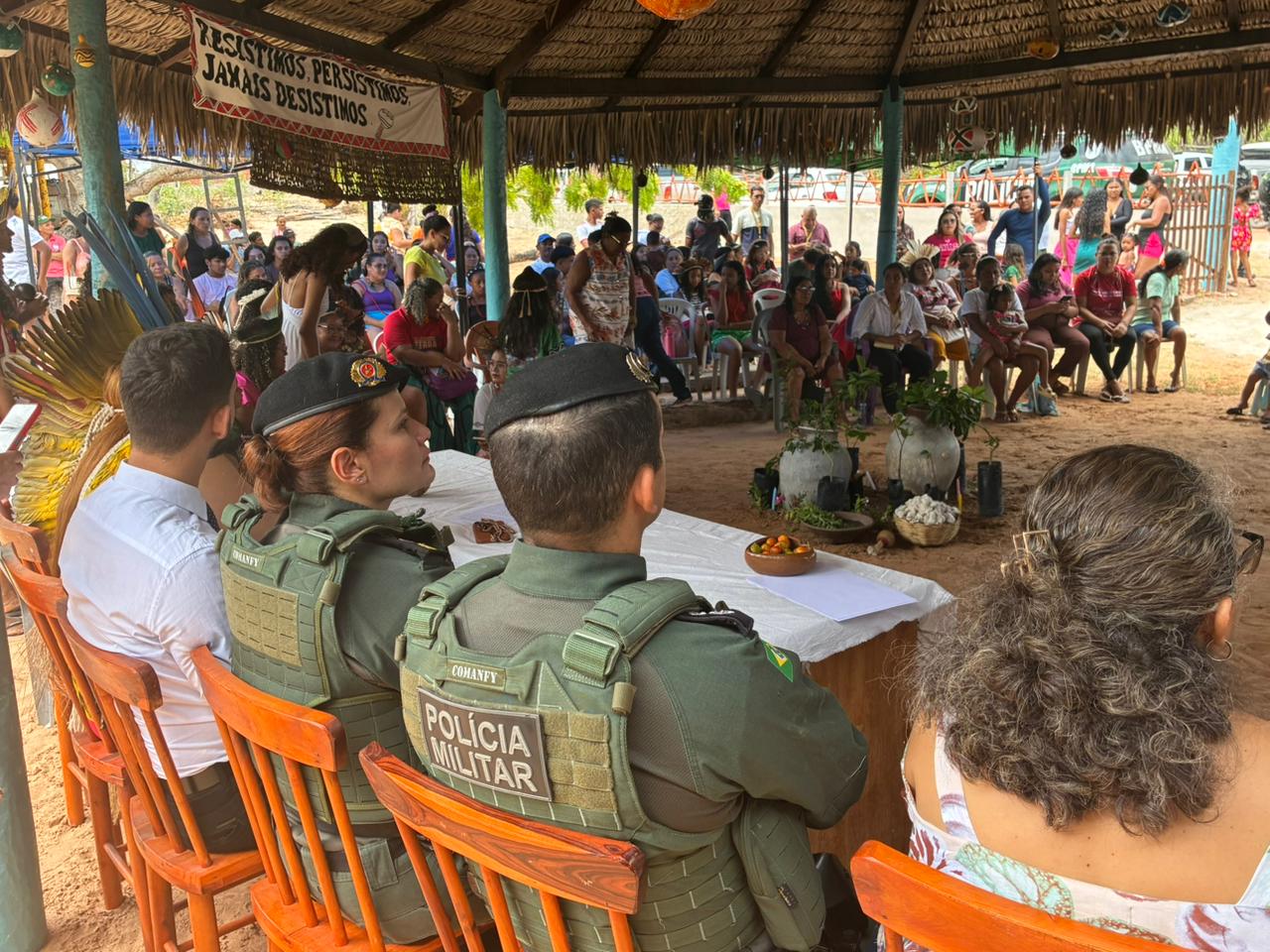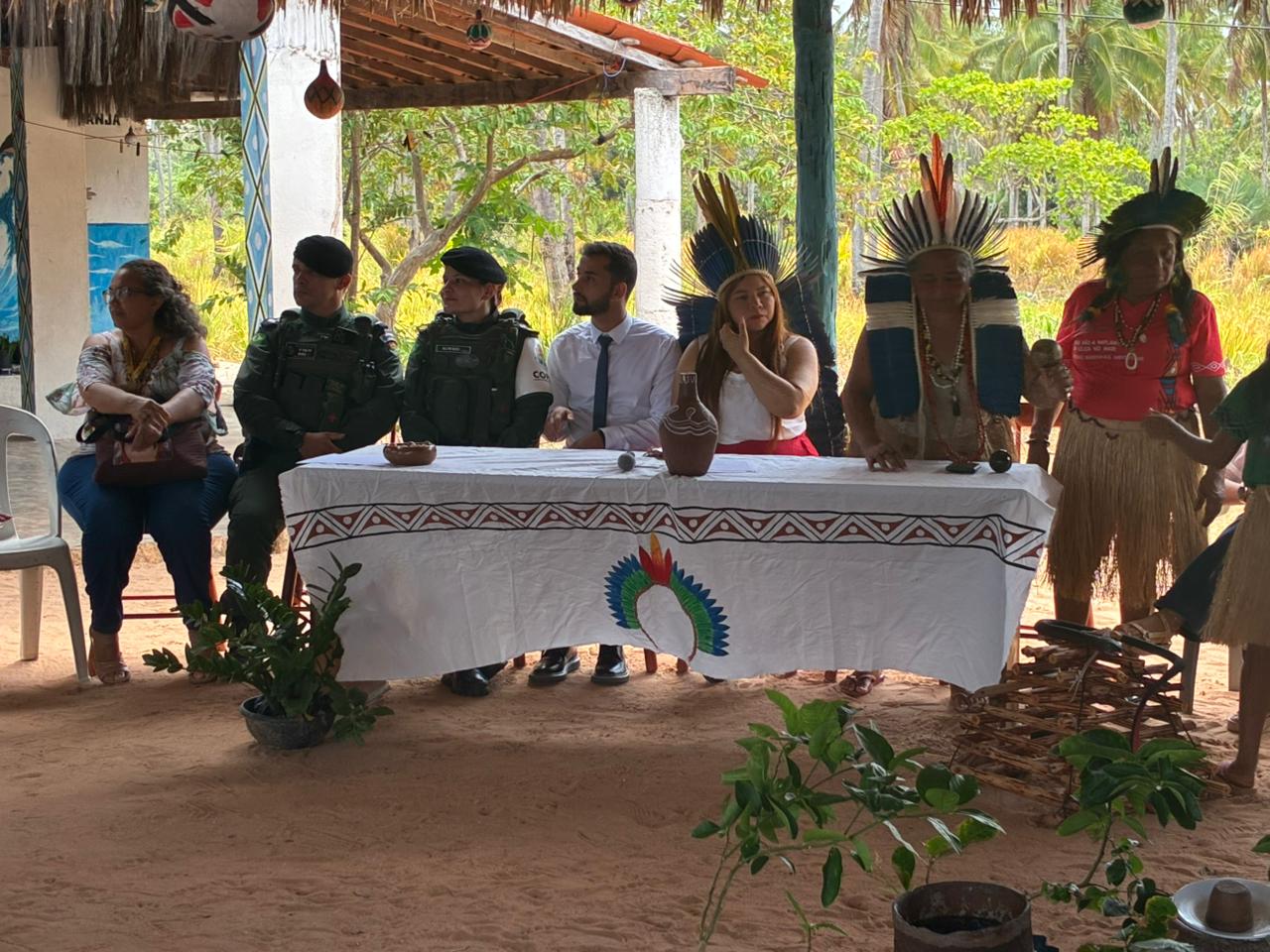 A Polícia Militar do Ceará (PMCE), por meio do Comando de Prevenção e Apoio às Comunidades (Copac) e do 11º Batalhão de Polícia Militar (11º BPM) participou da primeira audiência pública realizada no território indígena Tremembé da Barra do Mundaú, no município de Itapipoca. O encontro reuniu representantes da comunidade indígena e de instituições públicas para debater temas relevantes para o território.