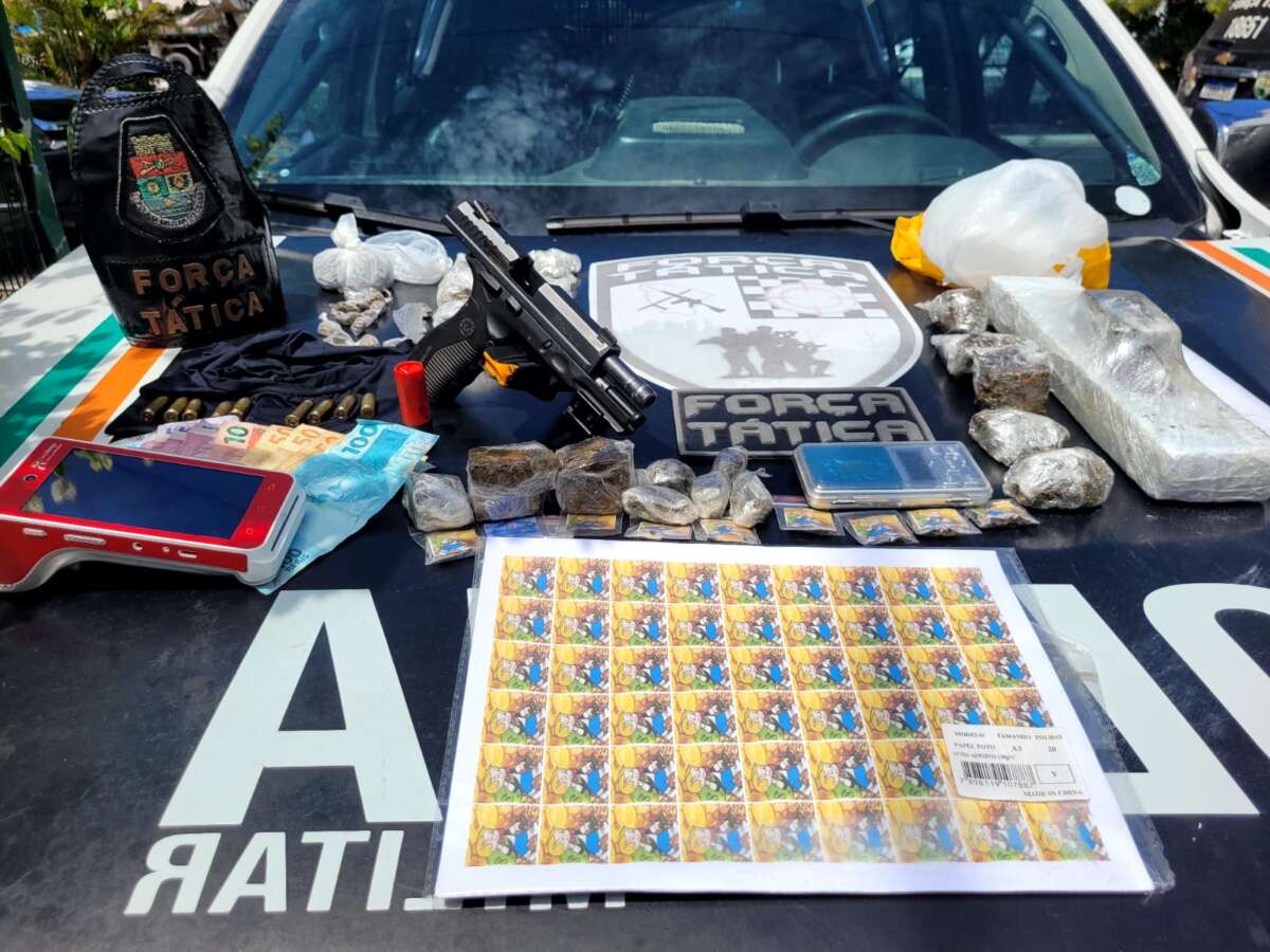 O homem foi conduzido ao 10º Distrito Policial, onde foi autuado por tráfico ilícito de drogas e porte ilegal de arma de fogo de uso restrito, ficando à disposição da Justiça.