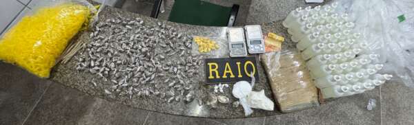 A Polícia Militar do Ceará (PMCE), por intermédio de uma composição do Comando de Policiamento de Rondas de Ações Intensivas e Ostensivas (CPRaio), prendeu um homem de 24 anos suspeito de tráfico de drogas na noite dessa quarta-feira (24), no bairro Canidezinho, em Fortaleza. Na ação, foram apreendidos cerca de 100 gramas de cocaína, aproximadamente 750 gramas de maconha, 25 comprimidos de ecstasy, 44 frascos de substância conhecida como “loló”, duas balanças de precisão, embalagens utilizadas para o acondicionamento de entorpecentes e a quantia de R$ 30 em espécie.
