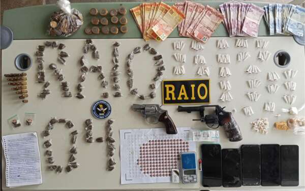 A Polícia Militar do Ceará (PMCE), por intermédio de uma equipe do Comando de Policiamento de Rondas de Ações Intensivas e Ostensivas (CPRaio), prendeu um homem de 23 anos e uma mulher de 29 anos, apreendeu duas armas de fogo, munições, entorpecentes e dinheiro, e cumpriu um mandado de prisão em desfavor da suspeita, na manhã desse sábado (27), no bairro Parque Potira, em Caucaia.