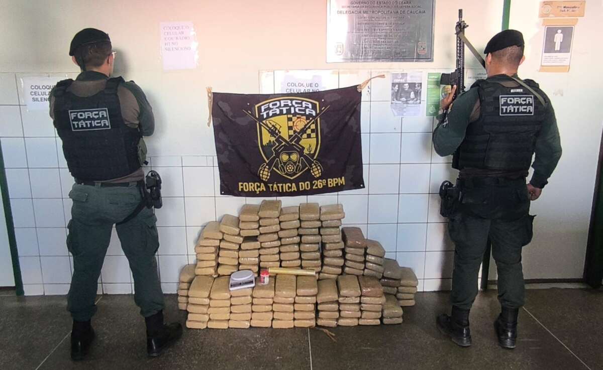 Uma mulher de 32 anos foi presa pela Polícia Militar do Ceará (PMCE) após a apreensão de uma grande quantidade de entorpecentes no bairro Parque Guadalajara, em Caucaia, na tarde desta terça-feira (30). A ação foi realizada por equipes da Força Tática do 26º Batalhão e resultou na retirada de circulação de 177 quilos de maconha do tipo skank.