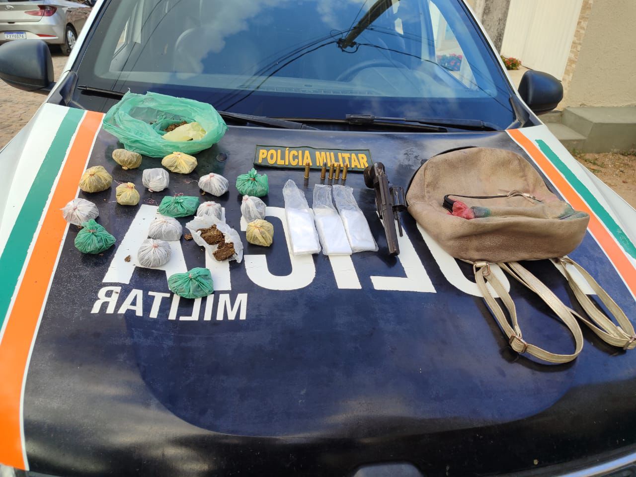 A Polícia Militar do Ceará (PMCE), por meio de equipe do 11º Batalhão Policial Militar, prendeu um homem na manhã desta terça-feira (30), no município de Itapajé, por porte ilegal de arma de fogo e tráfico de drogas.