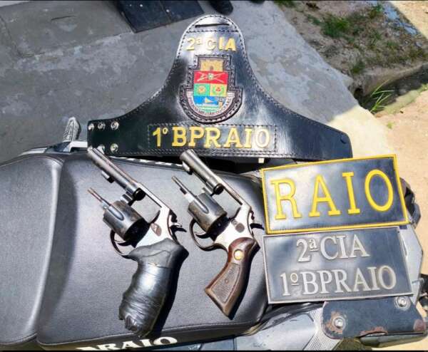Por volta das 10h30, após informações repassadas pelo serviço de inteligência sobre a presença de indivíduos escondidos em uma casa abandonada na região, os policiais militares diligenciaram ao local. Ao realizarem a averiguação no imóvel e no quintal, a equipe localizou o suspeito e encontrou as armas de fogo dentro de um saco.