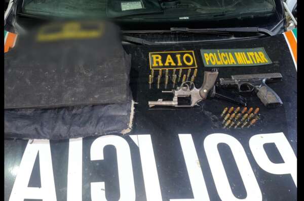Uma composição do 16º Batalhão da Polícia Militar do Ceará (PMCE) apreendeu um adolescente de 17 anos com uma pistola calibre .9 mm, um revólver de calibre .38, 30 munições intactas desses dois calibres, além de 37 munições deflagradas de diversos calibres e um colete balístico, por volta da 1h dessa quarta-feira (31), na Comunidade da Mana, no bairro Conjunto Palmeiras, em Fortaleza.