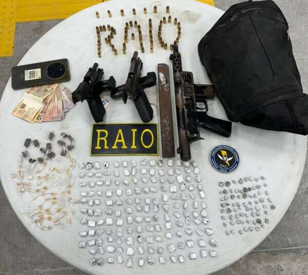Após denúncia anônima informando que indivíduos estariam em uma residência com armas de fogo e comercializando entorpecentes, policiais do Comando de Policiamento de Rondas de Ações Intensivas e Ostensivas (CPRaio) diligenciaram ao local informado. No endereço, os militares realizaram o cerco do imóvel. Durante a abordagem, um dos suspeitos tentou se evadir, arremessando uma arma de fogo ao solo, mas foi interceptado em posse de uma mochila, que estava com o material ilícito apreendido.