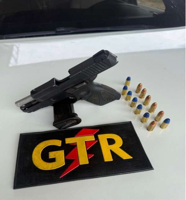 A ocorrência foi registrada enquanto equipes do Grupo Tático Rodoviário (GTR) realizavam patrulhamento e serviço de escolta e batedor. Durante a ação, os policiais militares deram ordem de parada a um veículo Toyota Hilux, que apresentava pendência administrativa. Diante da atitude suspeita dos ocupantes, foi realizada busca pessoal, sendo localizada na cintura do condutor uma pistola calibre .9mm, acompanhada de 13 munições. Os dois homens que estavam no veículo receberam voz de prisão.