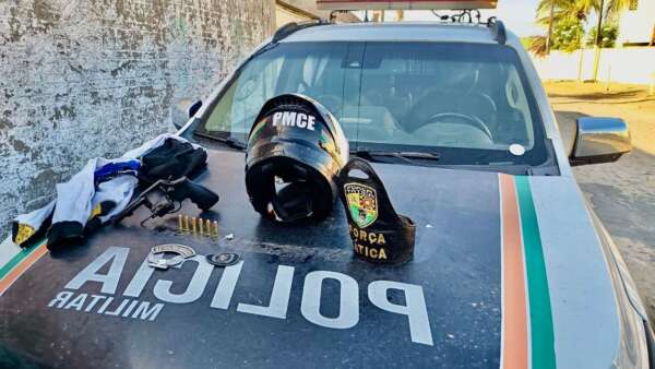 A Polícia Militar do Ceará (PMCE) apreendeu um revólver de calibre .38 e seis munições intactas e prendeu um suspeito de 24 anos, na tarde dessa sexta-feira (9), no cruzamento da Rua Nascente com a Avenida Central, no município de Caucaia. A ação foi realizada por uma equipe de motopatrulhamento do 12º Batalhão Policial Militar (12º BPM).
