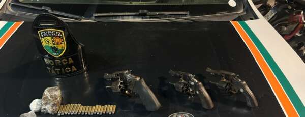 Após informações repassadas via frequência policial sobre um indivíduo que estaria portando uma arma de fogo, com base nas características informadas os militares visualizaram o suspeito e tentaram realizar a abordagem. Ao perceber a aproximação do motopatrulhamento, o homem empreendeu fuga, correndo até um contêiner de lixo, onde caiu e tentou se esconder. Em seguida, o indivíduo soltou o armamento e se deitou ao solo, sendo contido pela equipe. A arma, que estava municiada, foi apreendida no local e ele recebeu voz de prisão em flagrante.