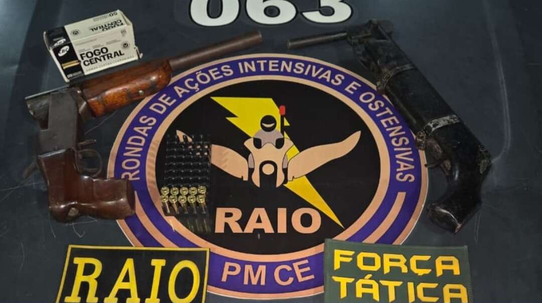 Durante as buscas, os policiais localizaram e apreenderam duas armas de fogo artesanais, sendo uma de calibre .38 e outra de calibre .12, ambas com numeração suprimida. Também foi apreendida uma motocicleta Yamaha Factor, que, conforme as informações apuradas, teria sido utilizada na prática criminosa. Nenhum suspeito foi encontrado no imóvel no momento da ação.