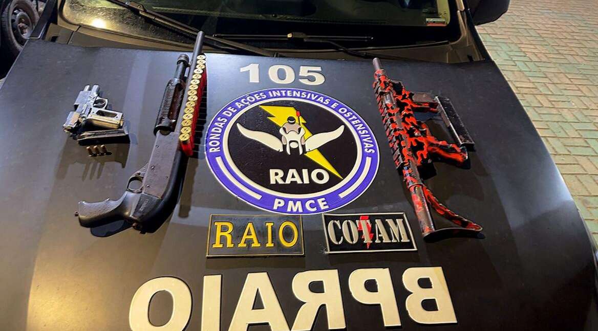 A Polícia Militar do Ceará (PMCE), por meio do 1º Batalhão do Policiamento de Rondas Intensivas e Ostensivas (1º BPRAIO) com apoio do Comando Tático Motorizado (Cotam), prendeu quatro indivíduos e apreendeu três armas de fogo durante uma ocorrência registrada na noite dessa segunda-feira (20), no bairro Tabapuazinho, no município de Caucaia.