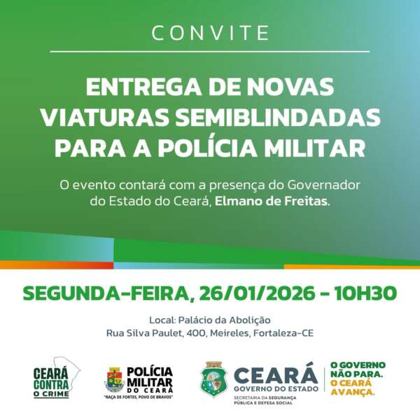 Na próxima segunda-feira (26), o Comitê Estratégico de Segurança Integrada do Ceará (Coesi) volta a se reunir. O encontro será no Palácio da Abolição, em Fortaleza, a partir das 9h. Após o encontro, o governador Elmano de Freitas entrega à Polícia Militar do Ceará (PMCE) as primeiras 58 viaturas semiblindadas.