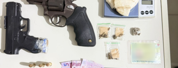 Uma equipe policial foi acionada por populares e se deslocou até a Rua José Teodoro do Nascimento, onde foi recebida pelo responsável pelo imóvel, que autorizou a entrada da composição. Durante as buscas realizadas no quarto do filho, os policiais encontraram a arma de fogo e duas munições calibre 12, confirmando a denúncia inicial.