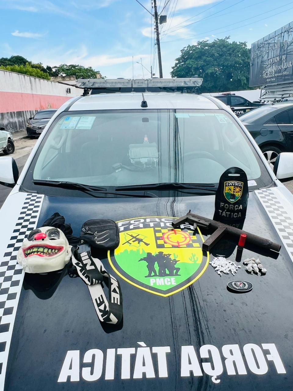 PMCE apreende arma artesanal e drogas durante patrulhamento na região da Tabuba, em Caucaia