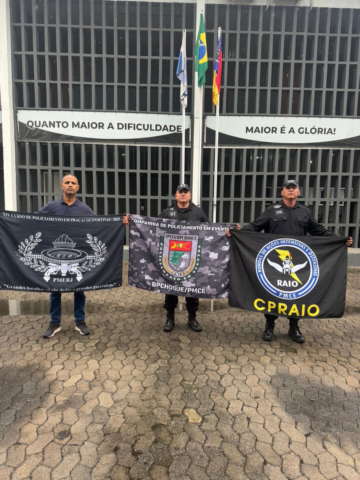 O capitão Márcio Ferreira Severino, do Comando de Policiamento de Rondas de Ações Intensivas e Ostensivas (CPRaio), e o 3º sargento Luiz Gonzaga de Oliveira Júnior, da 3ª Companhia do Batalhão de Polícia de Choque (BPChoque), da Polícia Militar do Ceará (PMCE), concluíram com êxito o 14º Curso de Policiamento em Praças Desportivas (CPPD). A capacitação foi realizada pelo Batalhão Especializado de Policiamento em Estádios (BEPE) da Polícia Militar do Estado do Rio de Janeiro (PMERJ).