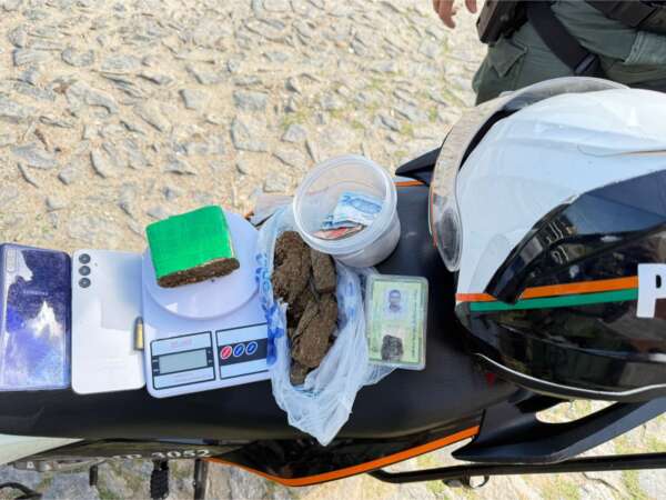 Diante da denúncia, a equipe realizou uma vistoria no residencial e localizou um apartamento com a porta aberta, aparentemente abandonado. Ao entrarem no imóvel, os policiais encontraram diversas malas. No interior delas, foi localizada uma peça de maconha, além de outras porções da substância já fracionadas, totalizando cerca de 300 gramas do entorpecente. Também foram apreendidos uma balança de precisão, uma quantia em dinheiro, dois aparelhos celulares, uma munição de calibre .38 e um documento de identidade.