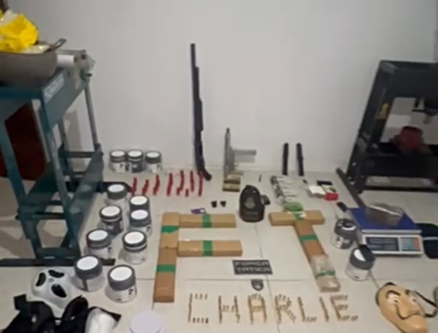No endereço ainda foram apreendidos duas prensas hidráulicas grandes, duas balanças de precisão, dois aparelhos celulares, eletrodomésticos, quatro placas de veículos, uma embalagem de cocaína e cerca de 7,5 quilos de maconha. Todo o material ilícito foi encaminhado para a 13ª Delegacia de Polícia Civil da Capital, onde foram realizados os procedimentos.