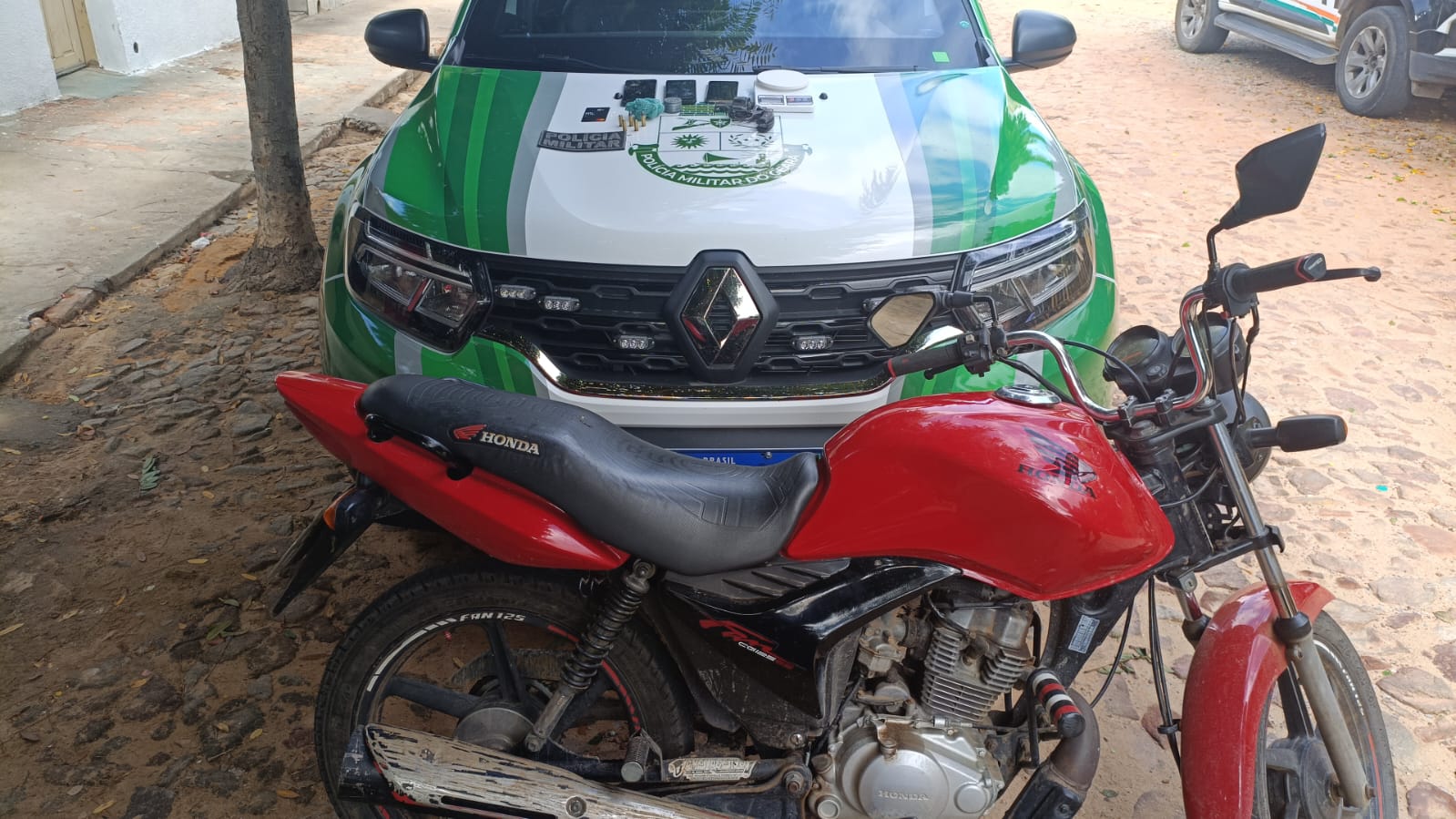 A ação ocorreu após as equipes receberem informações sobre a presença de uma motocicleta roubada no interior de uma residência localizada na Rua Jacob Felício Ribeiro. De imediato, os policiais militares se deslocaram ao endereço indicado e, durante as diligências, confirmaram a veracidade da denúncia.