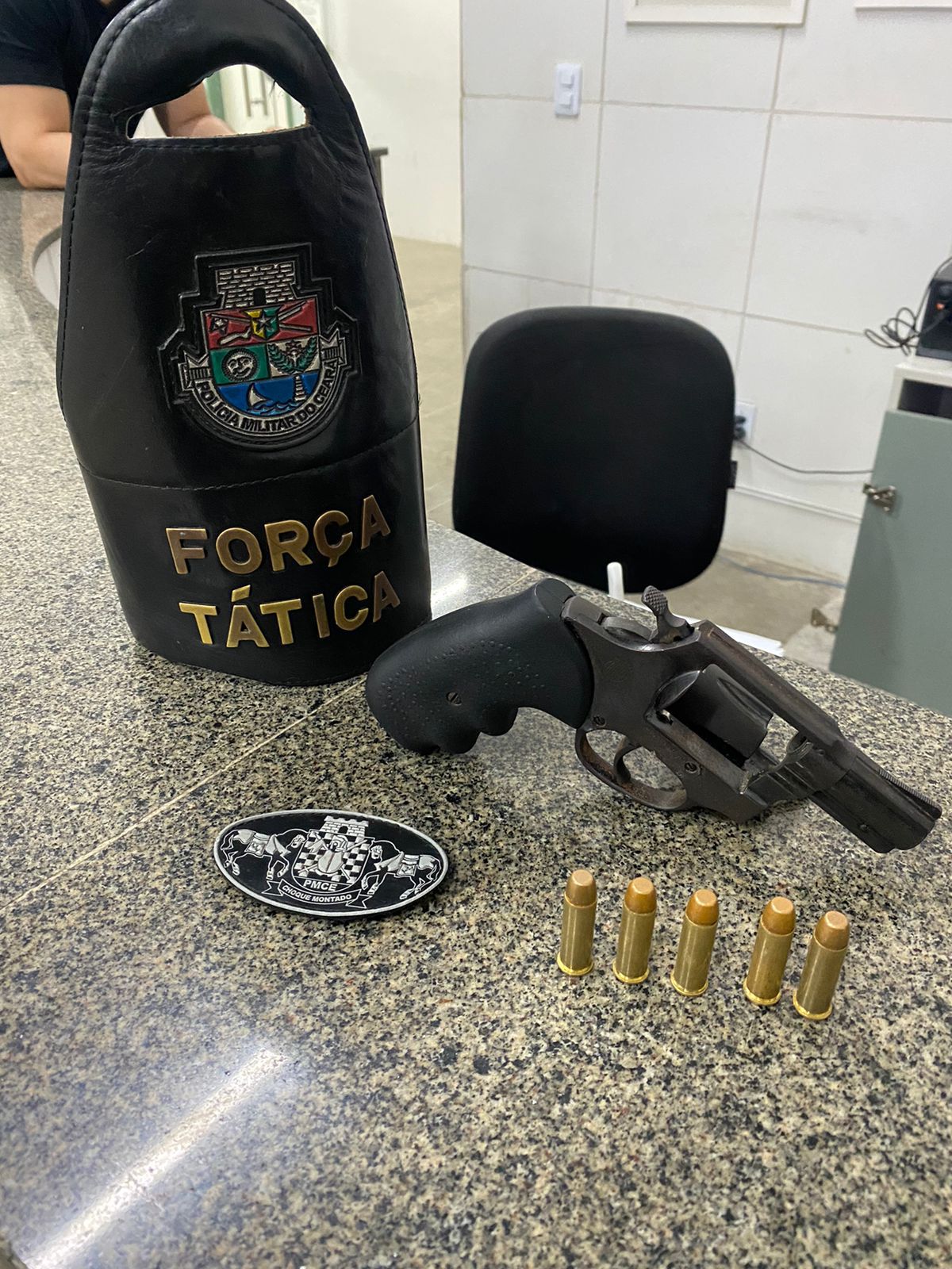 A Polícia Militar do Ceará (PMCE), por meio do 25º Batalhão de Polícia Militar (25º BPM), apreendeu, na noite desse domingo (8), um revólver calibre .38 com munições em um imóvel abandonado localizado no bairro Croatá, no município de Pacajus. A ação ocorreu durante patrulhamento de rotina, após denúncia da população sobre a utilização do local para práticas ilícitas.