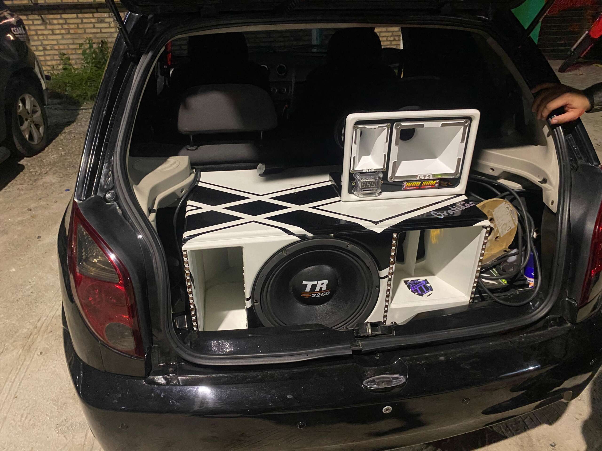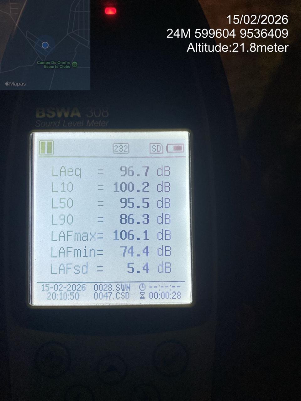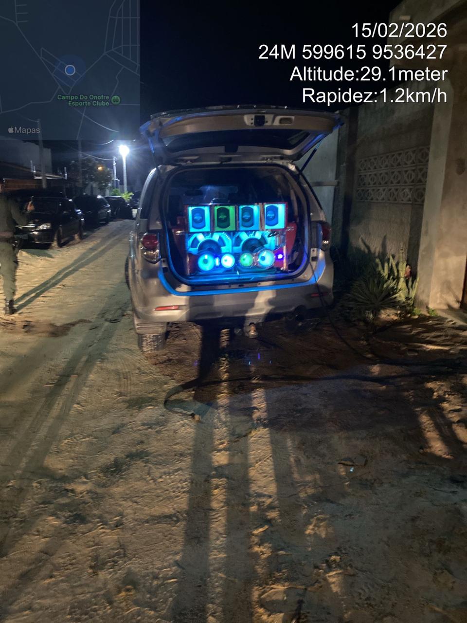 A primeira ocorrência foi registrada por volta das 20h10, no Sítio Coqueiro, em Beberibe. A equipe do BPMA, em comboio com equipes da Polícia Civil do Estado do Ceará (PCCE), Batalhão de Policiamento Turístico (BPTur) e 2ª Cia/ 30º BPM, deslocou-se até um estabelecimento para averiguar denúncia de som automotivo em volume excessivo. No local, foi constatado um veículo com aparelhagem sonora de grande porte instalada, equipada com iluminação em LED. Após aferição com sonômetro, foi registrada medição de 96,7 decibéis, índice em desacordo com os limites estabelecidos pela norma técnica NBR 10151.