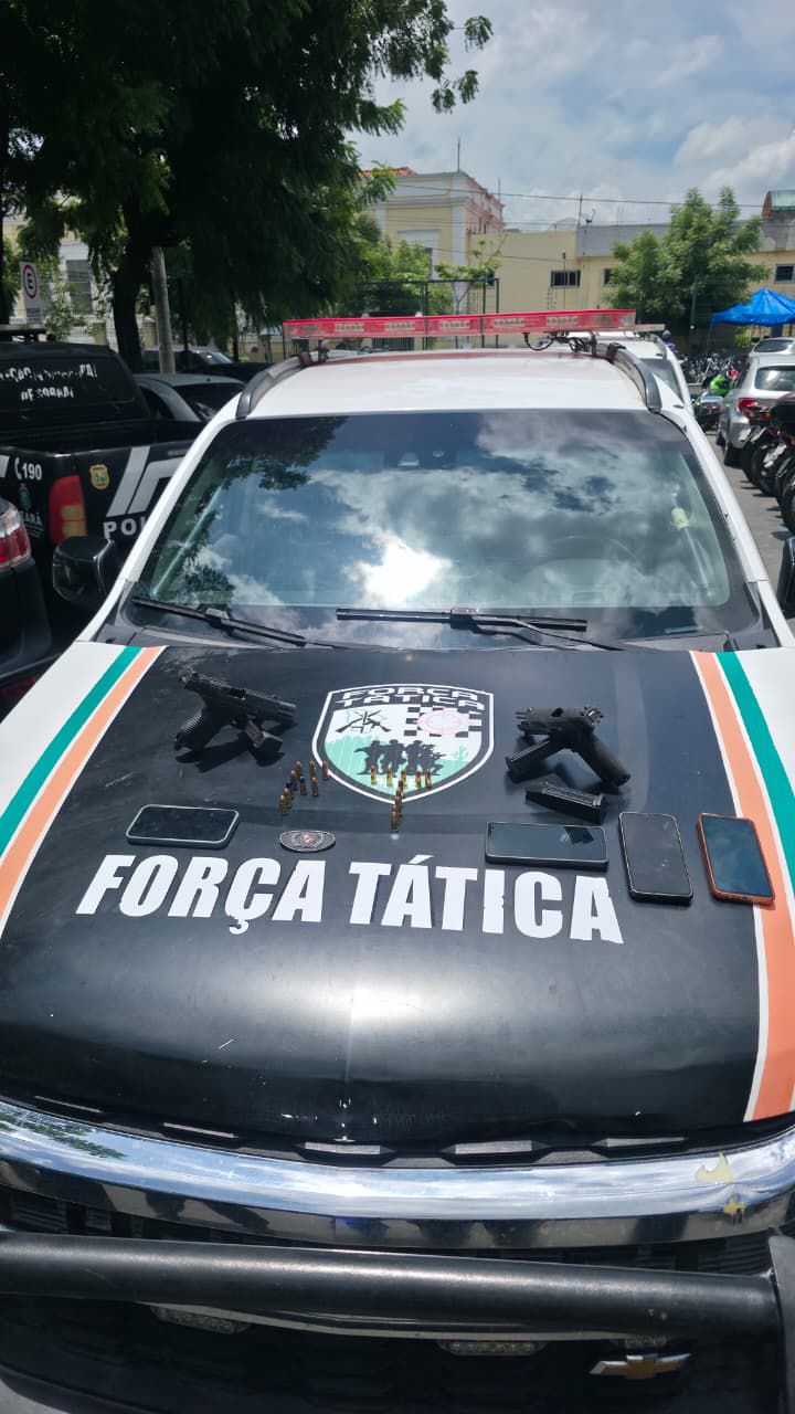 Já os suspeitos de 30 e 26 anos foram autuados por disparo de arma de fogo e porte ilegal de arma de fogo. O de 30 anos possui antecedente por roubo, enquanto o de 26 anos possui antecedentes por roubo, receptação, desacato, motim de presos e porte ilegal de arma de fogo.