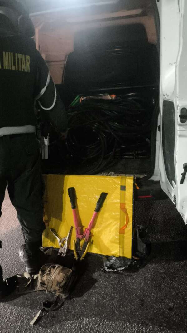 A abordagem ocorreu no KM 30 da rodovia CE-040. Na ocasião, o motorista de um furgão leve, de 28 anos, demonstrou nervosismo ao ter os documentos conferidos pelos policiais do BPRE. Ao ser verificado o compartimento de carga, foram encontrados mais três suspeitos, sendo dois de 24 anos e um de 31 anos, além de uma grande quantidade de fios de alta tensão, totalizando 300 kg do material, e um alicate industrial.
