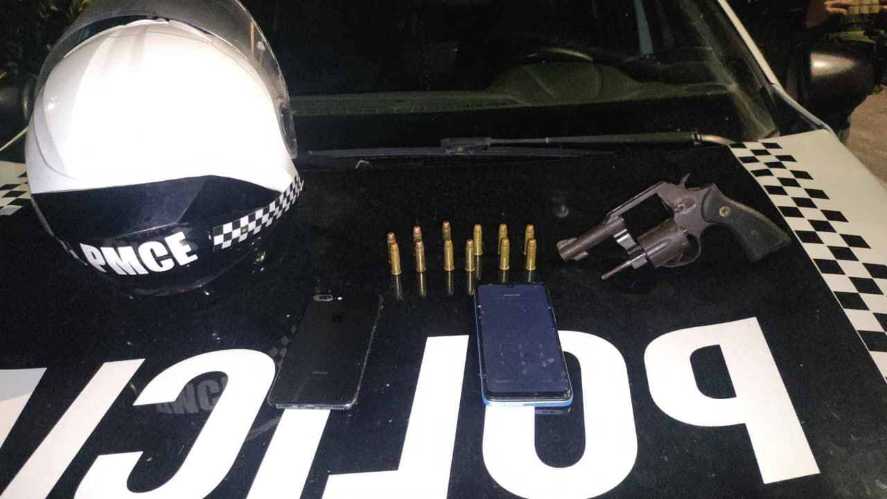 Equipes da 1ª Companhia do 2º Batalhão de Policiamento de Rondas de Ações Intensivas e Ostensivas (1ª Cia/ 2º BPRaio) e do 12º Batalhão (12º BPM), da Polícia Militar do Ceará (PMCE), apreenderam um revólver calibre .38, munições e drogas e apreenderam dois adolescentes, de 17 e 16 anos, na noite dessa terça-feira (24), na Rua Monsenhor Custódio de Almeida, bairro Camurupim, em Caucaia. A ação ocorreu após denúncias de que indivíduos armados estariam ameaçando moradores nas proximidades da lagoa do Camurupim.